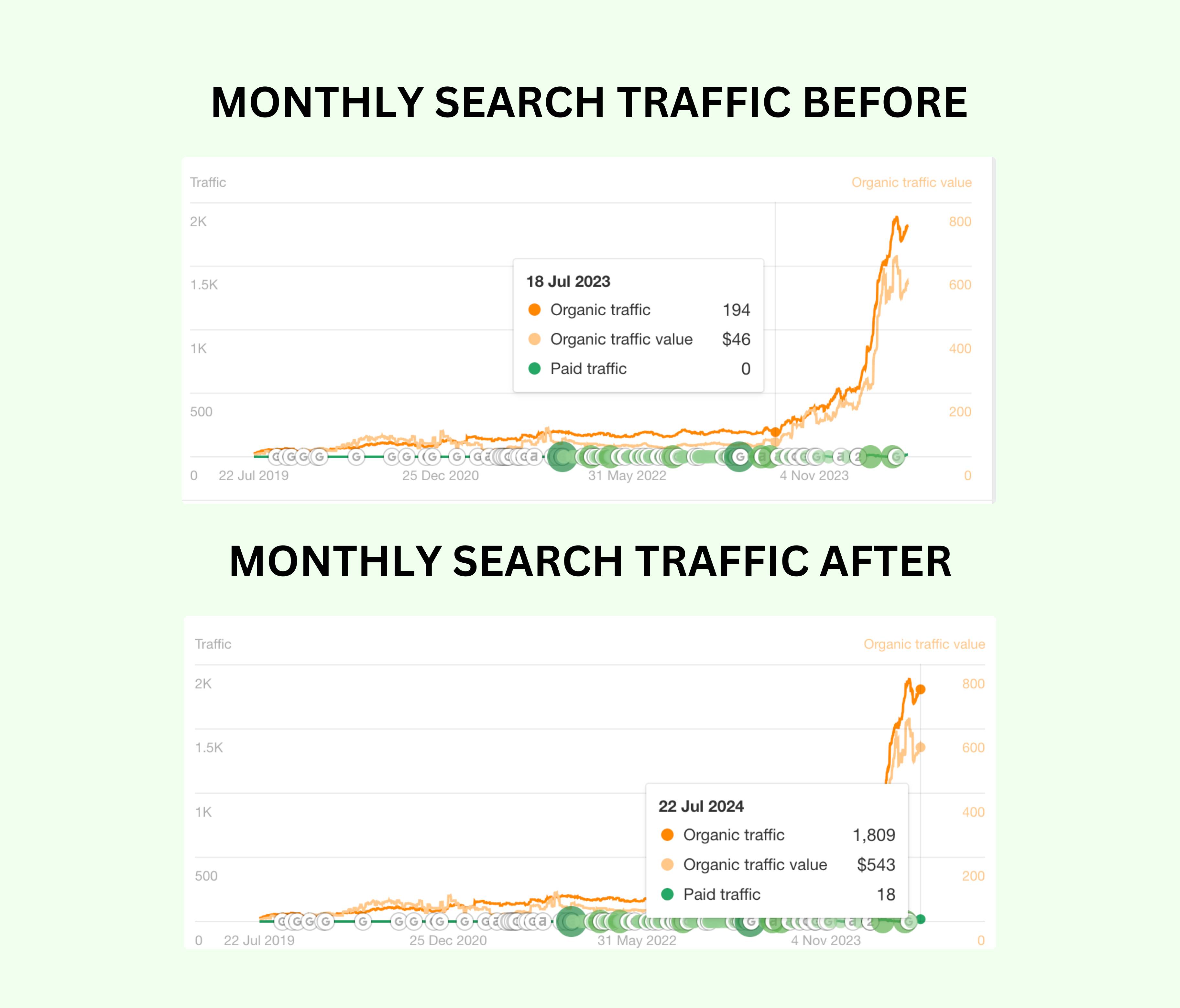 In just one year alone, they saw a 19,260 increase in organic search traffic. That is a staggering 823.08% increase. This led to a higher donation rate and value of over 100% compared to their previous year, along with a significant increase in the amount of users joining their online bible studies.